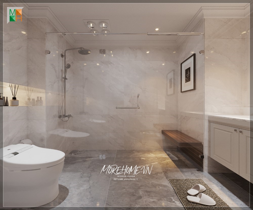 Thiết kế nội thất phòng tắm theo phong cách hiện đại, bổ sung các tiện nghi và đảm bảo độ thẩm mỹ cao.