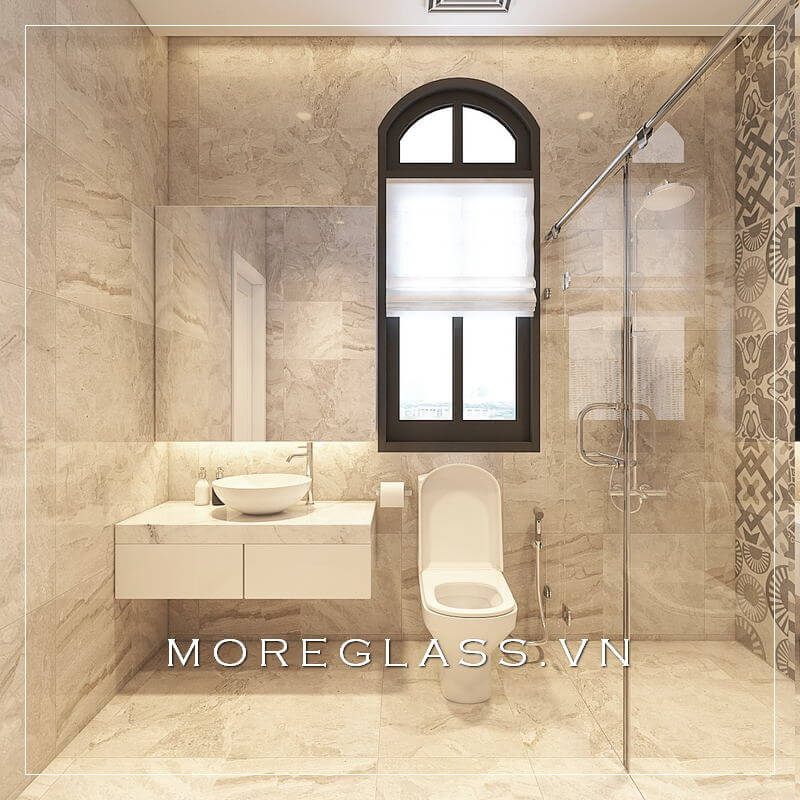 chọn thiết bị phòng tắm nhỏ gọn là rất quan trọng. Các bồn rửa tay âm tường hay bồn tắm đứng có thể giải phóng diện tích, giúp bạn dễ dàng di chuyển và mang lại cảm giác rộng rãi hơn. Hãy sử dụng các vách ngăn kính trong suốt để tạo sự kết nối giữa các khu vực, giúp ánh sáng phân tán đều và không bị chặn lại.